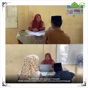 Berlangsung pada Ahad, 30 November 2025, mencakup tes lisan, serta wawancara calon santri dan calon walisantri untuk menggali karakter, motivasi, dan kesiapan belajar di lingkungan pesantren.