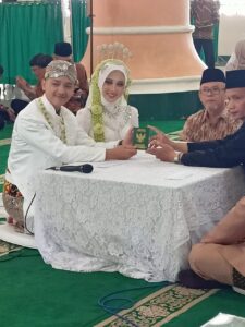 Prosesi ijab kabul dilangsungkan di ruang utama masjid dengan suasana sakral. Setelah akad nikah dinyatakan sah, acara dilanjutkan dengan resepsi sederhana namun penuh makna di aula bawah masjid.